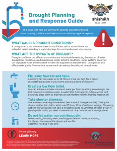 To help preserve this critical water supply we are looking to community to help conserve water now so that we can hopefully avoid an emergency water situation in the future. Attached is an information sheet that we have shared on Facebook. Please continue to monitor the shíshálh Nation Facebook page for further updates.
